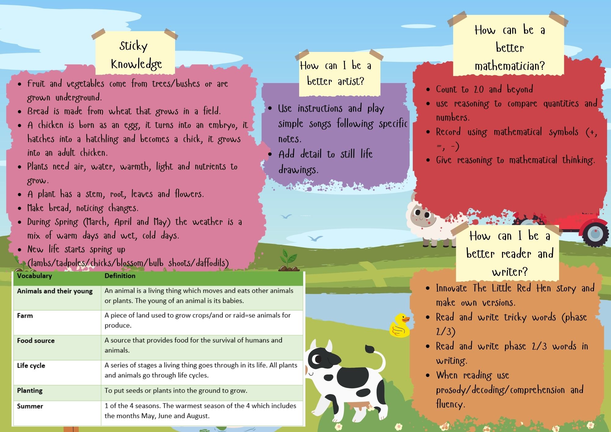 In Maths we will continue to build upon and broaden our number and shape knowledge, applying this to problem-solving situations based around our farming theme.