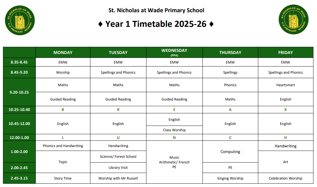 What does our weekly timetable look like?